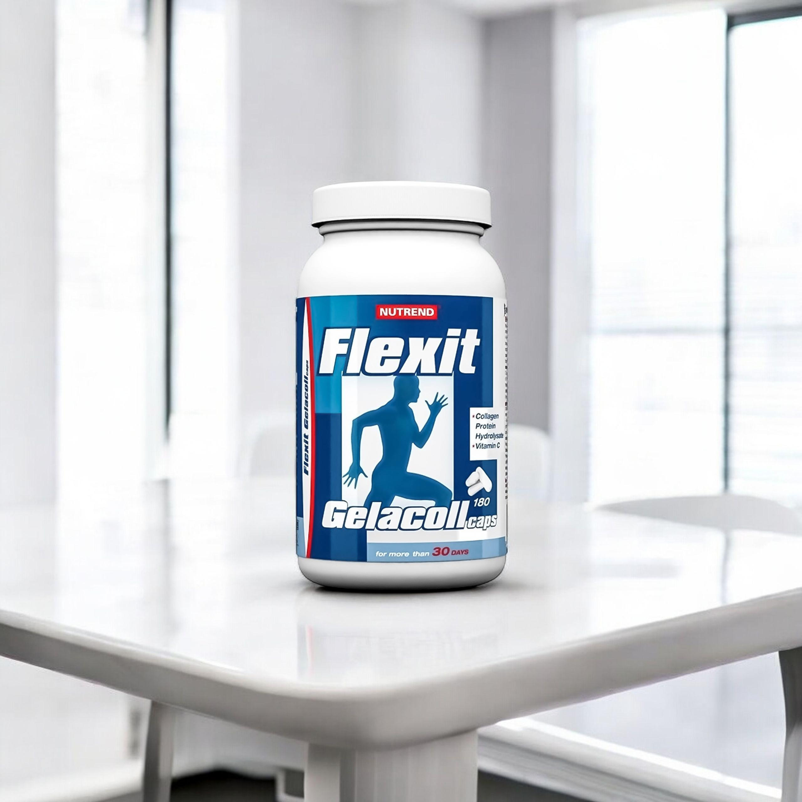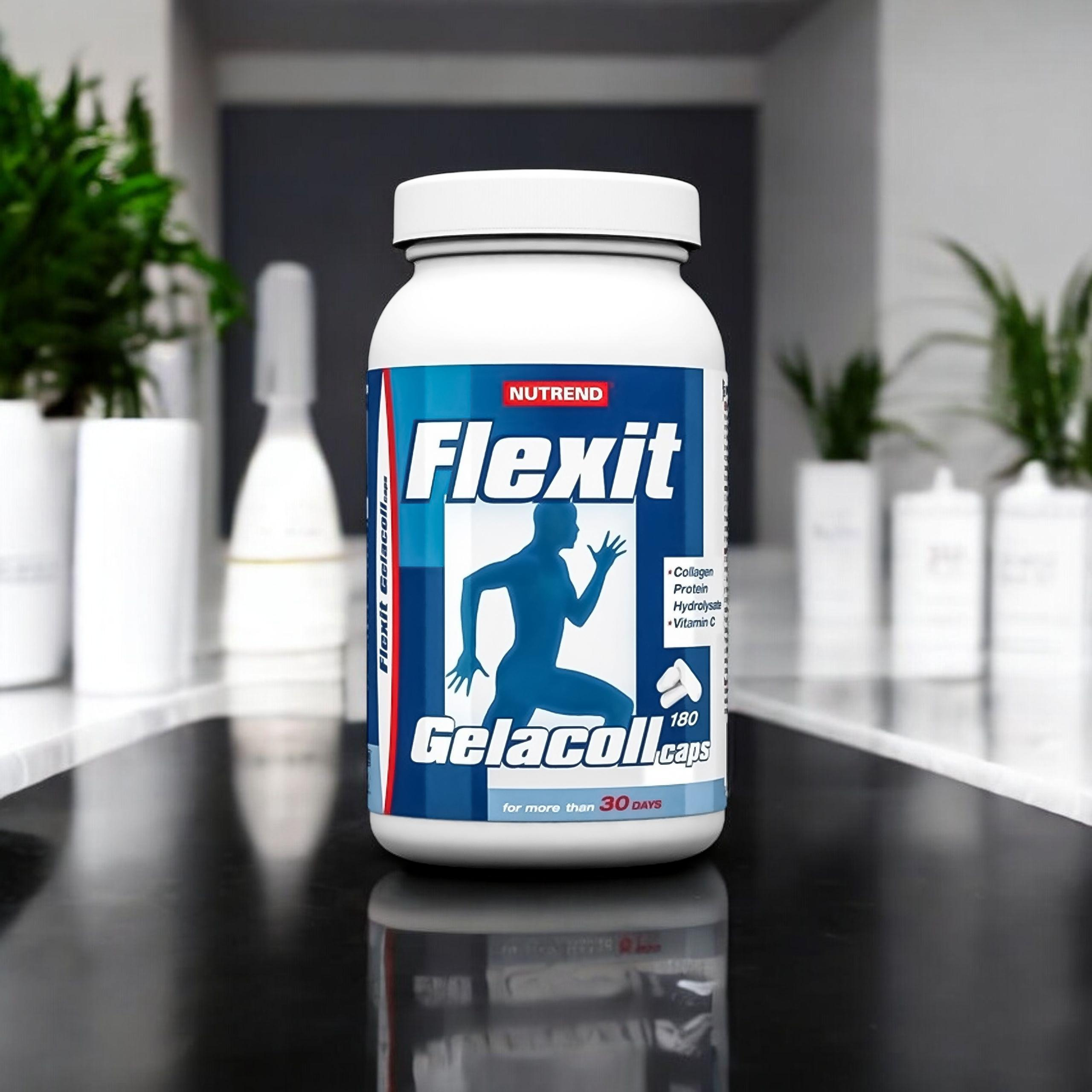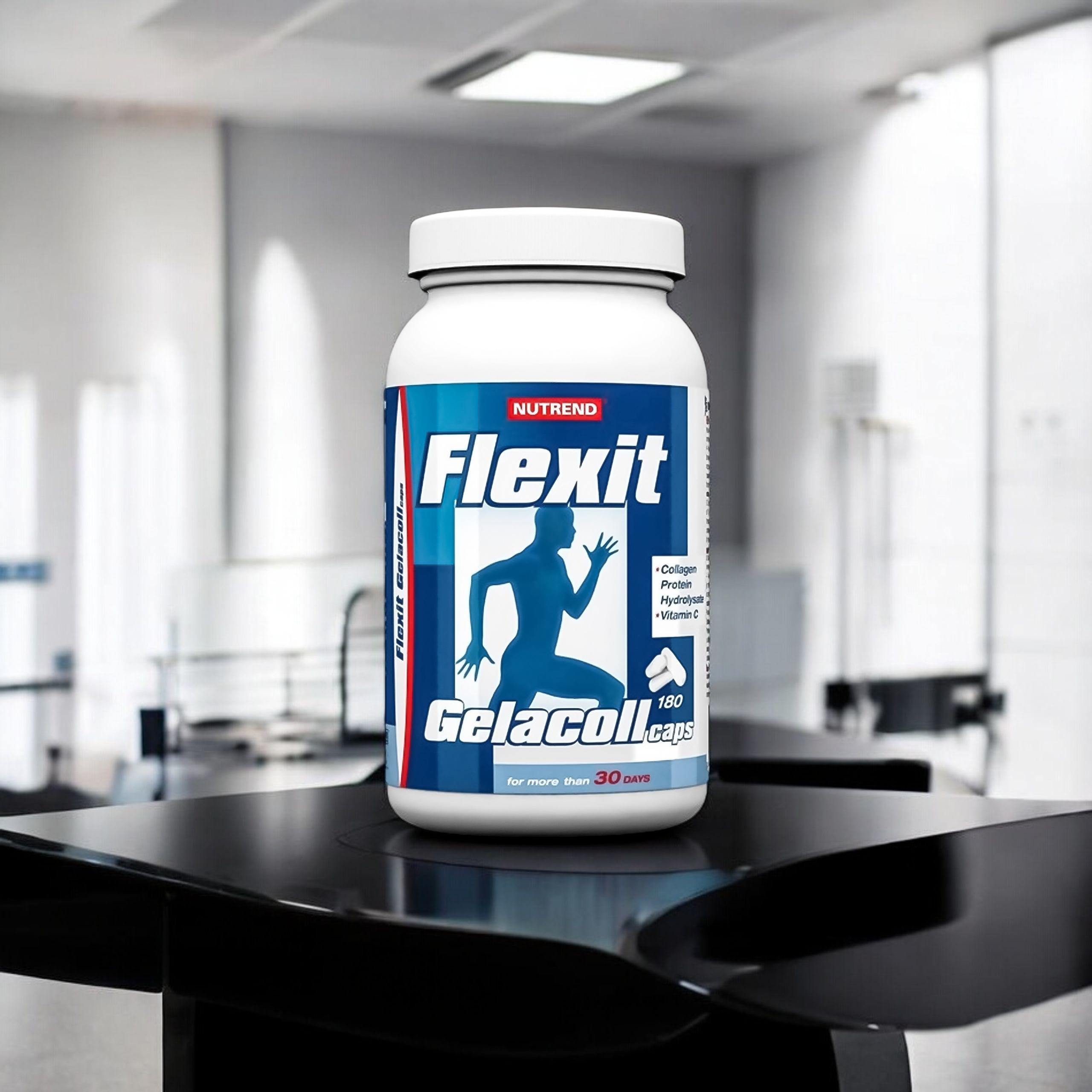 Kolagen je hlavní vláknitou složkou kůže, šlach, chrupavek, zubů a cév. Kolagen se vyskytuje v celém těle jako látka spojující buňky. Kolagenová bílkovina (hydrolyzát želatiny) je zdrojem širokého spektra aminokyselin a peptidů, které se podílejí na tvorbě kolagenu. Zajišťuje správný rozvoj, vyživuje a chrání kloubní části. Zlepšuje kondici vlasů, pokožky a nehtů. V kolagenovém doplňku Nutrend Flexit Gelacoll je použit 97% enzymaticky hydrolyzovaný želatinový hydrolyzát s vysokou biologickou hodnotou, snadno stravitelný, rychle vstřebatelný a okamžitě využitelný tělem.