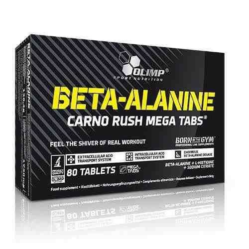 • Beta-alanine Carno Rush Mega Tabs je doplněk obsahující beta-alanin a L-histidin. Navíc složení bylo obohaceno o vitamin B6, který podporuje přeměnu aminokyselin.