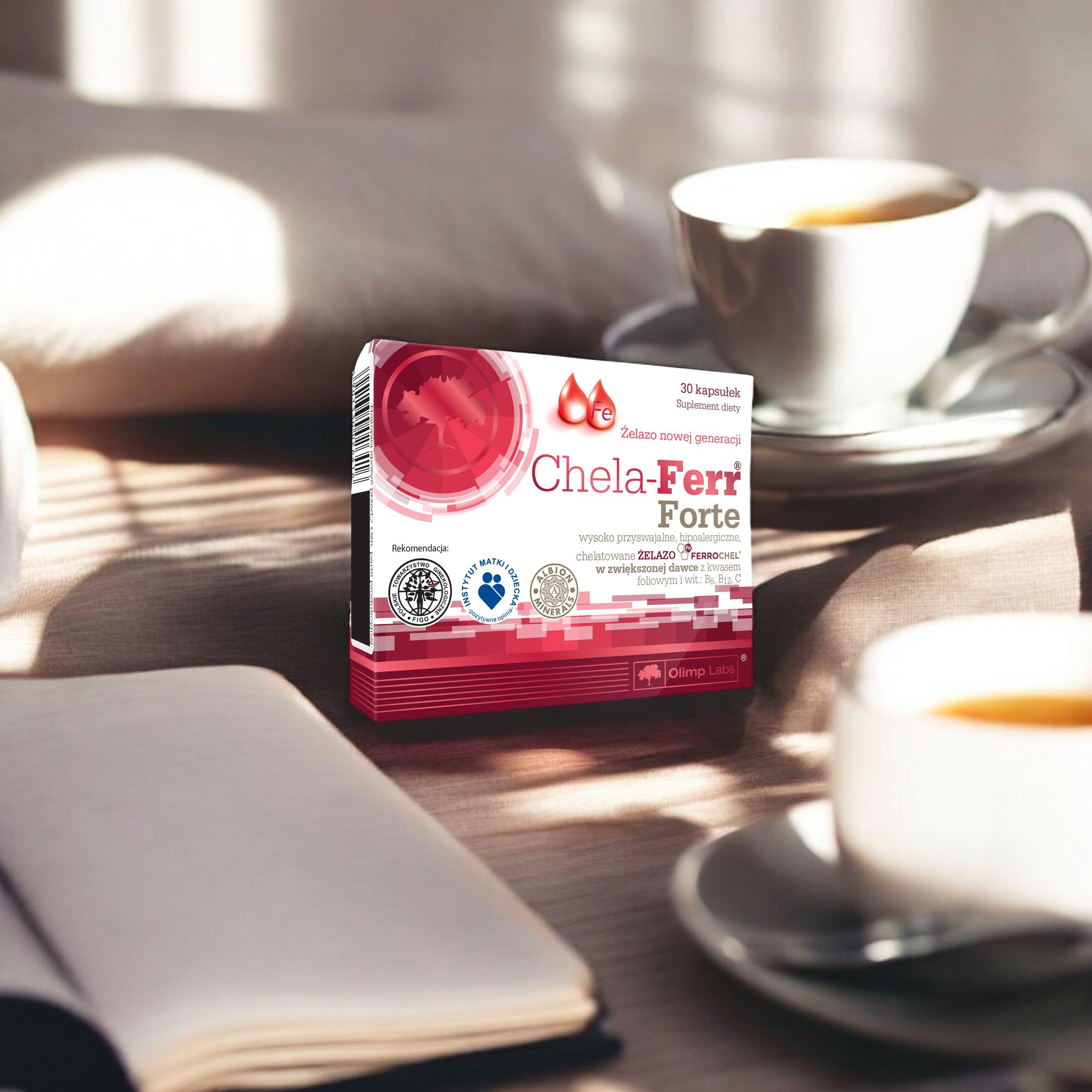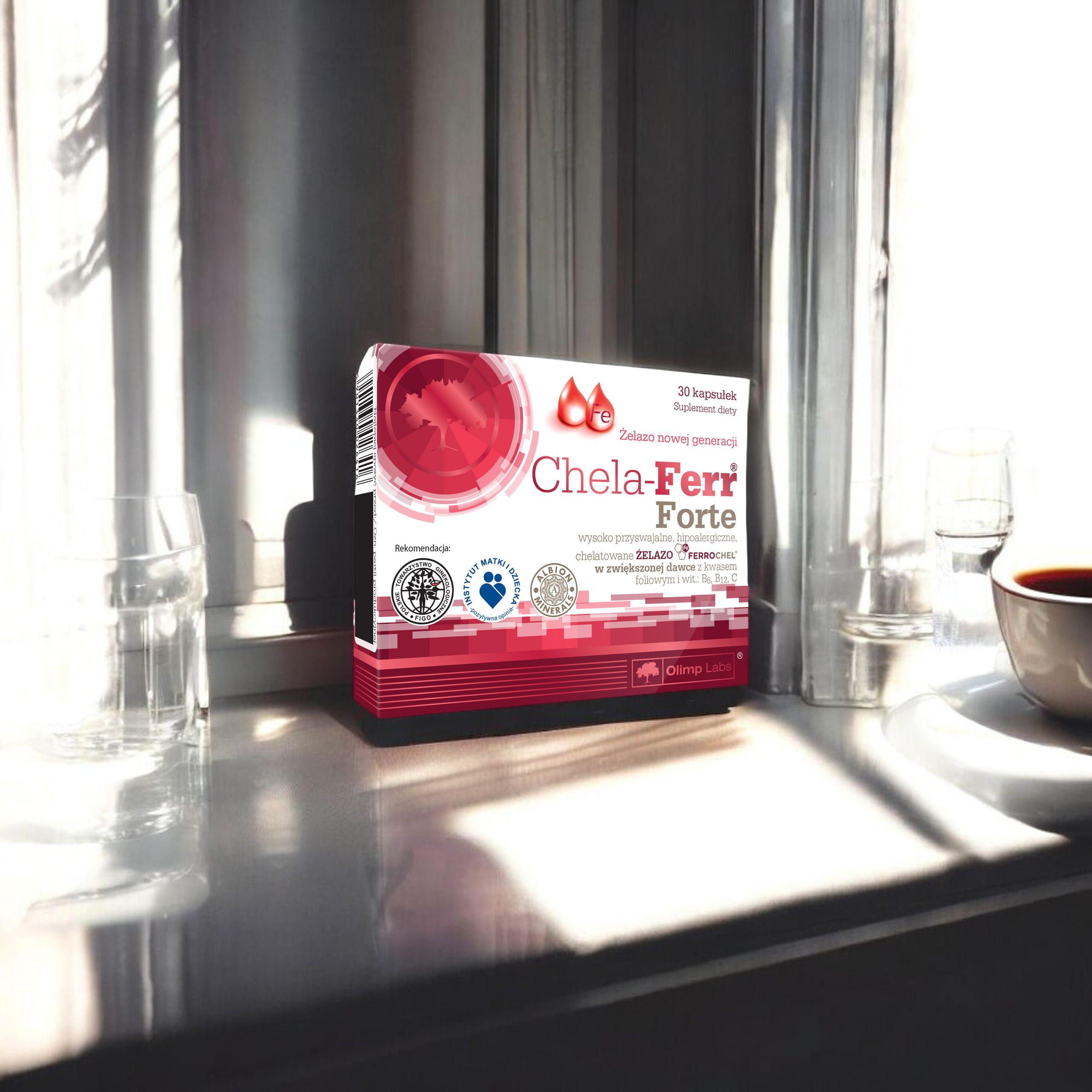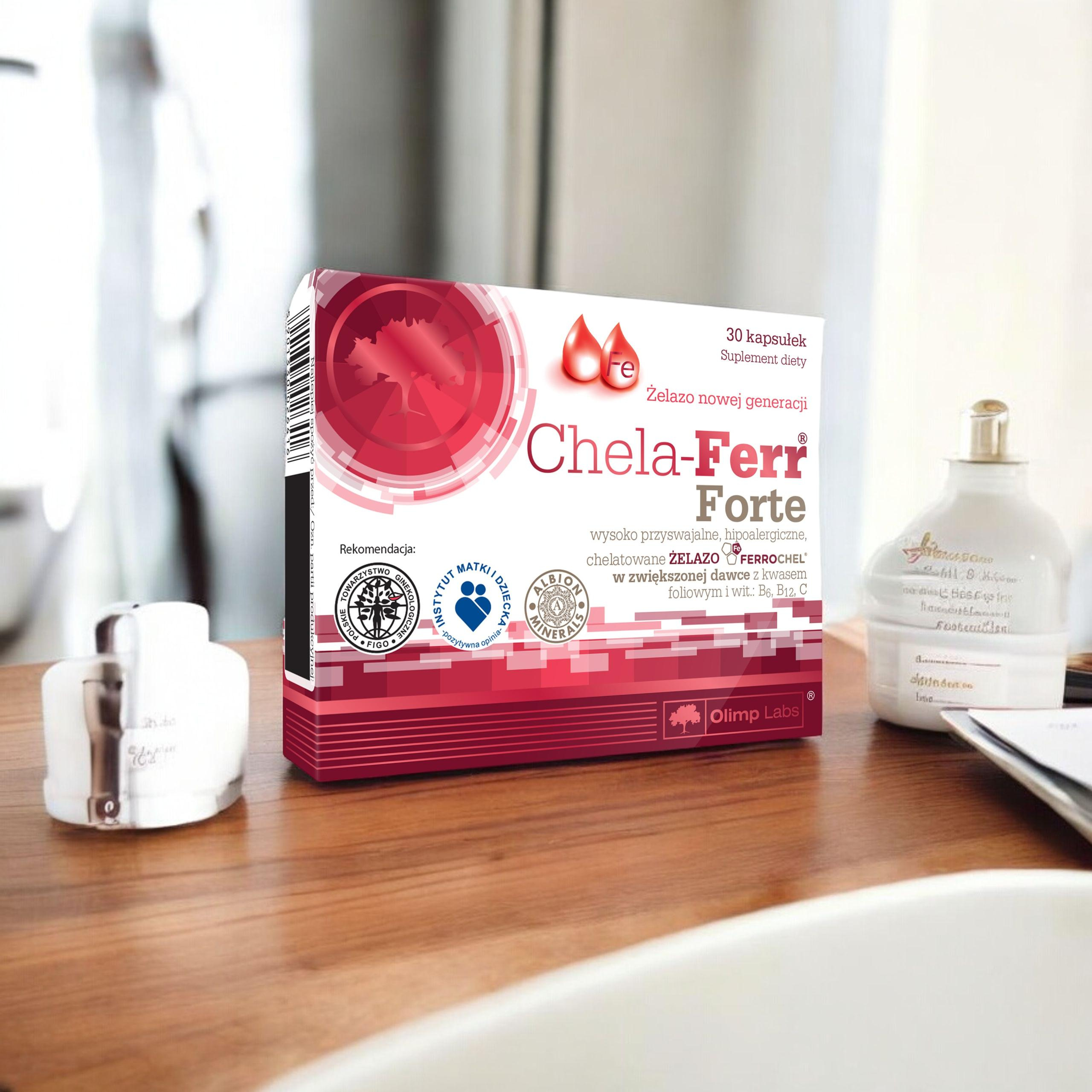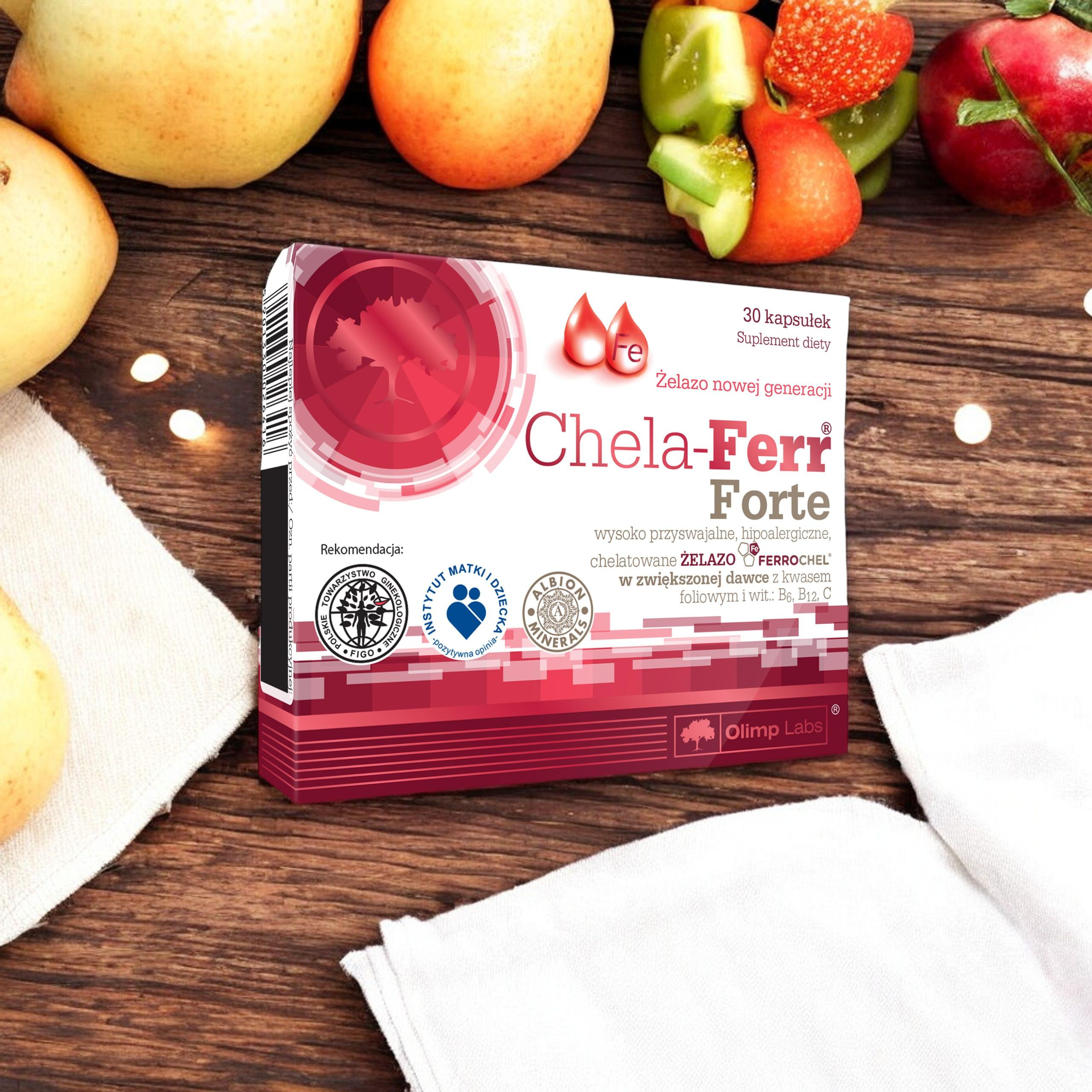 CHELA-FERR® FORTE je doplněk stravy obsahující železo Ferrochel® ve formě aminokyselinového chelátu Albion® (diglycinian železnatý) vysoce vstřebatelnou a dobře tolerovanou formu železa v pokročilém komplexu s kyselinou listovou a vitaminy: C, B6, B12.