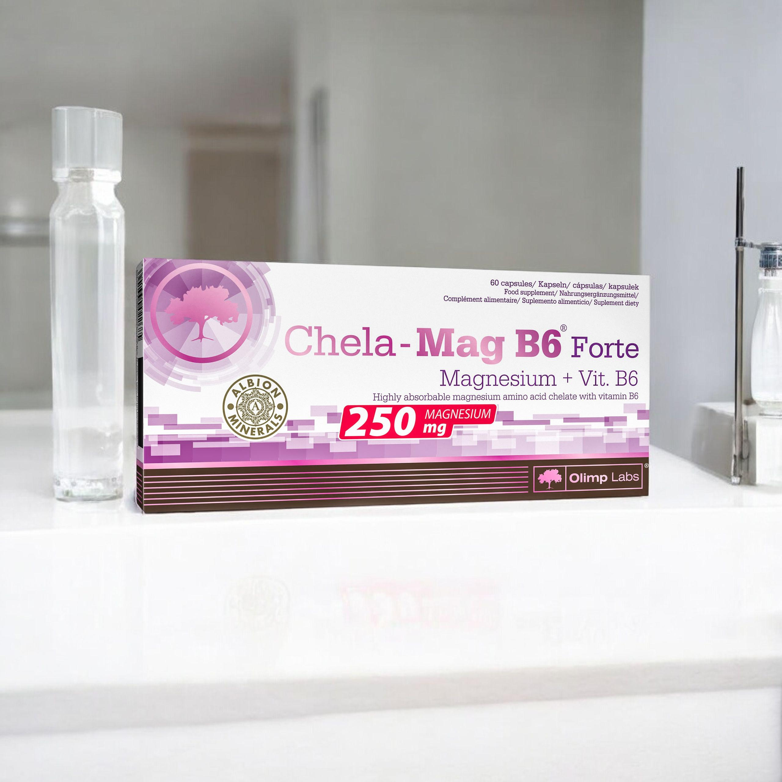 - Nejlépe vstřebatelná forma hořčíku ve zvýšené dávce Chela-Mag B6 Forte je doplněk určený pro osoby vykazující zvýšenou potřebu hořčíku: vedoucí intenzivní životní styl, vystavené nadměrnému stresu, vykonávající těžkou práci.