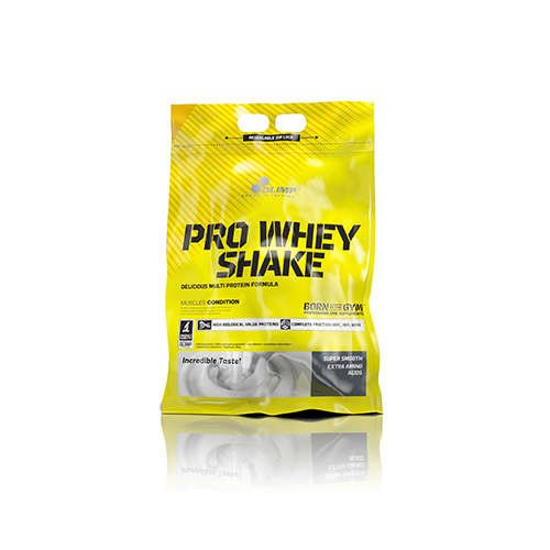 Pro Whey Shake značky Olimp Nutrition je proteinový doplněk, který se zakládá na komplexu bílkovin složených z izolátu (WPI), koncentrátu (WPC) a hydrolyzátu (WPH) syrovátkových bílkovin. Je snadno rozpustný a dobře stravitelný v těle, a také obsahuje další aktivní složky - taurin a glutamin, které podporují budování čité svalové hmoty.
