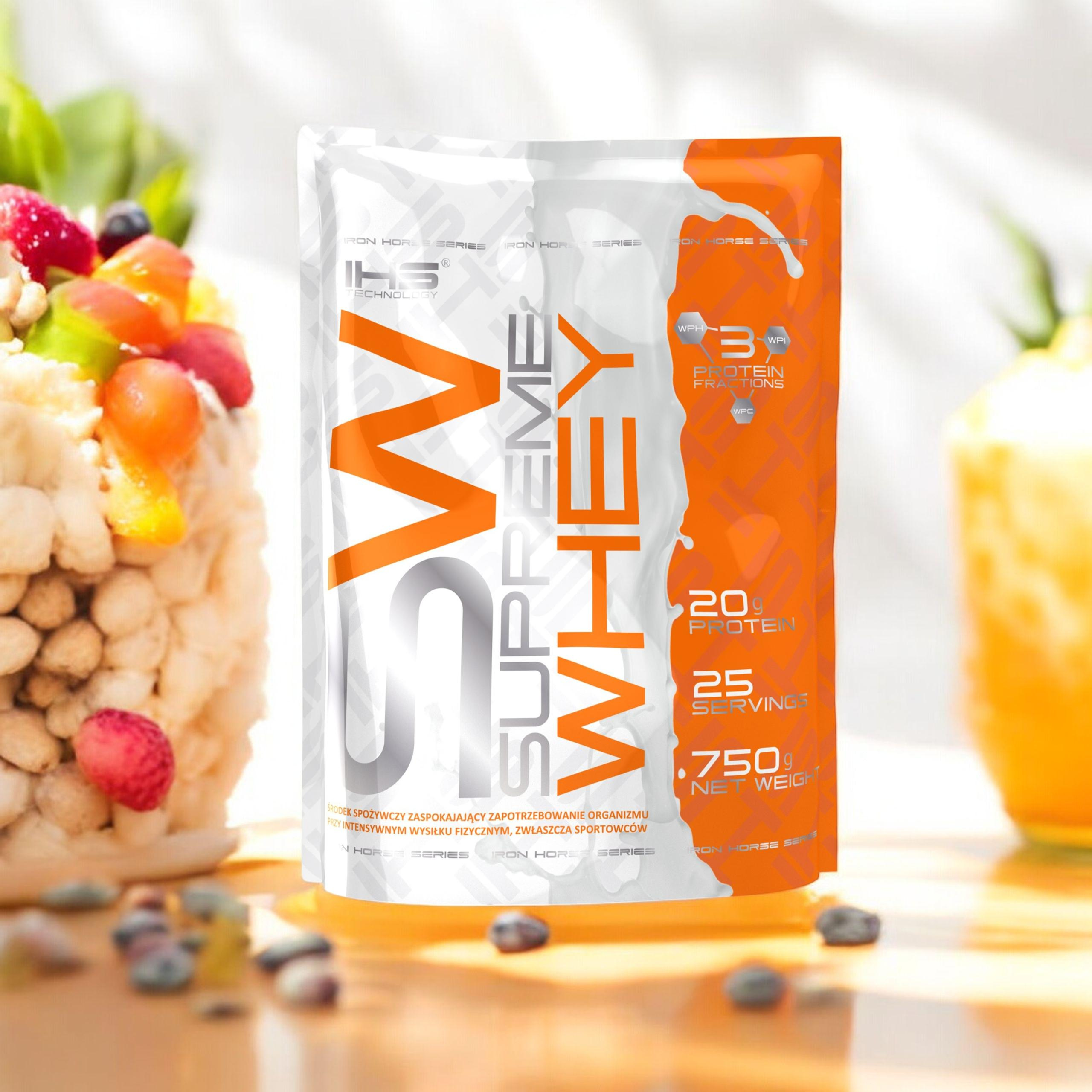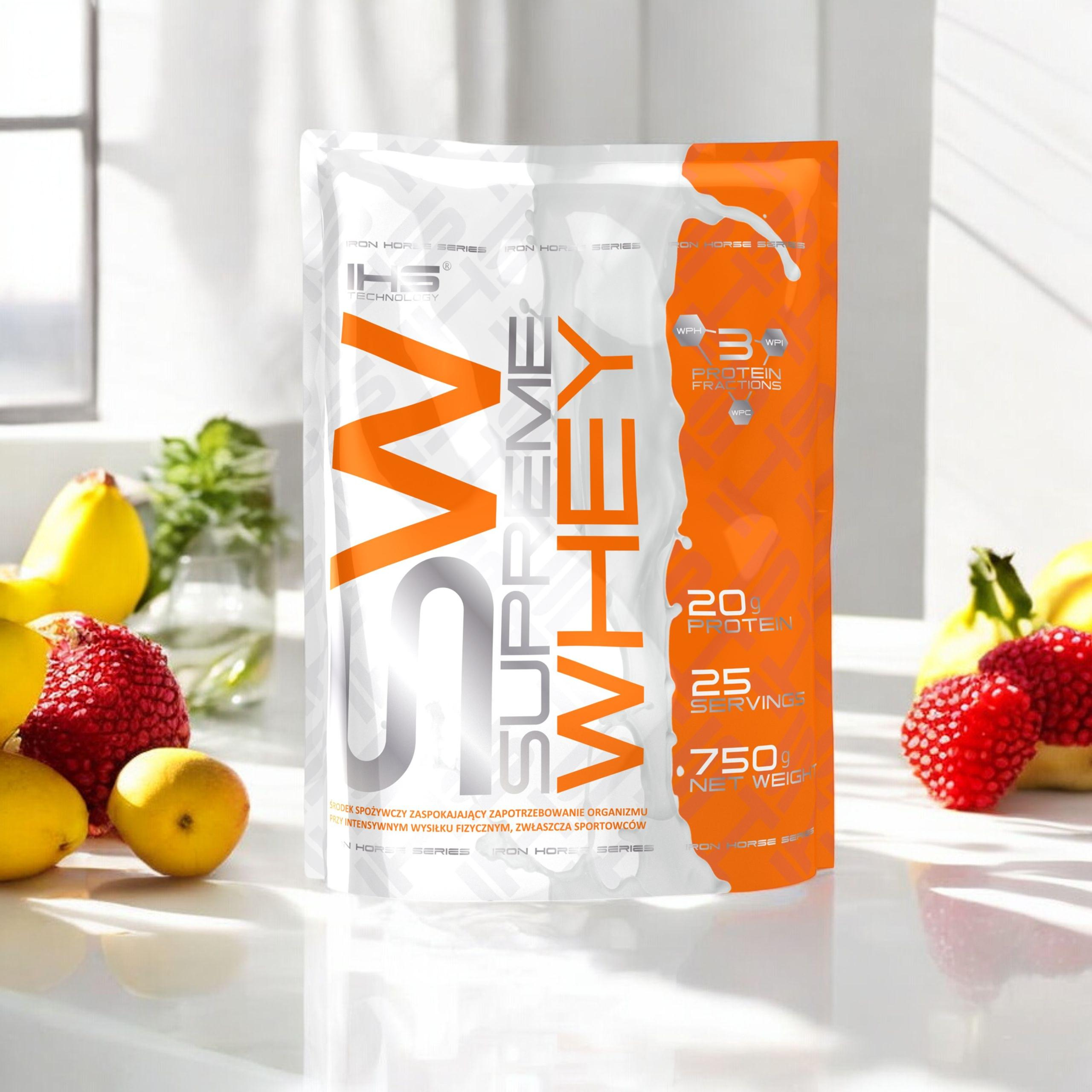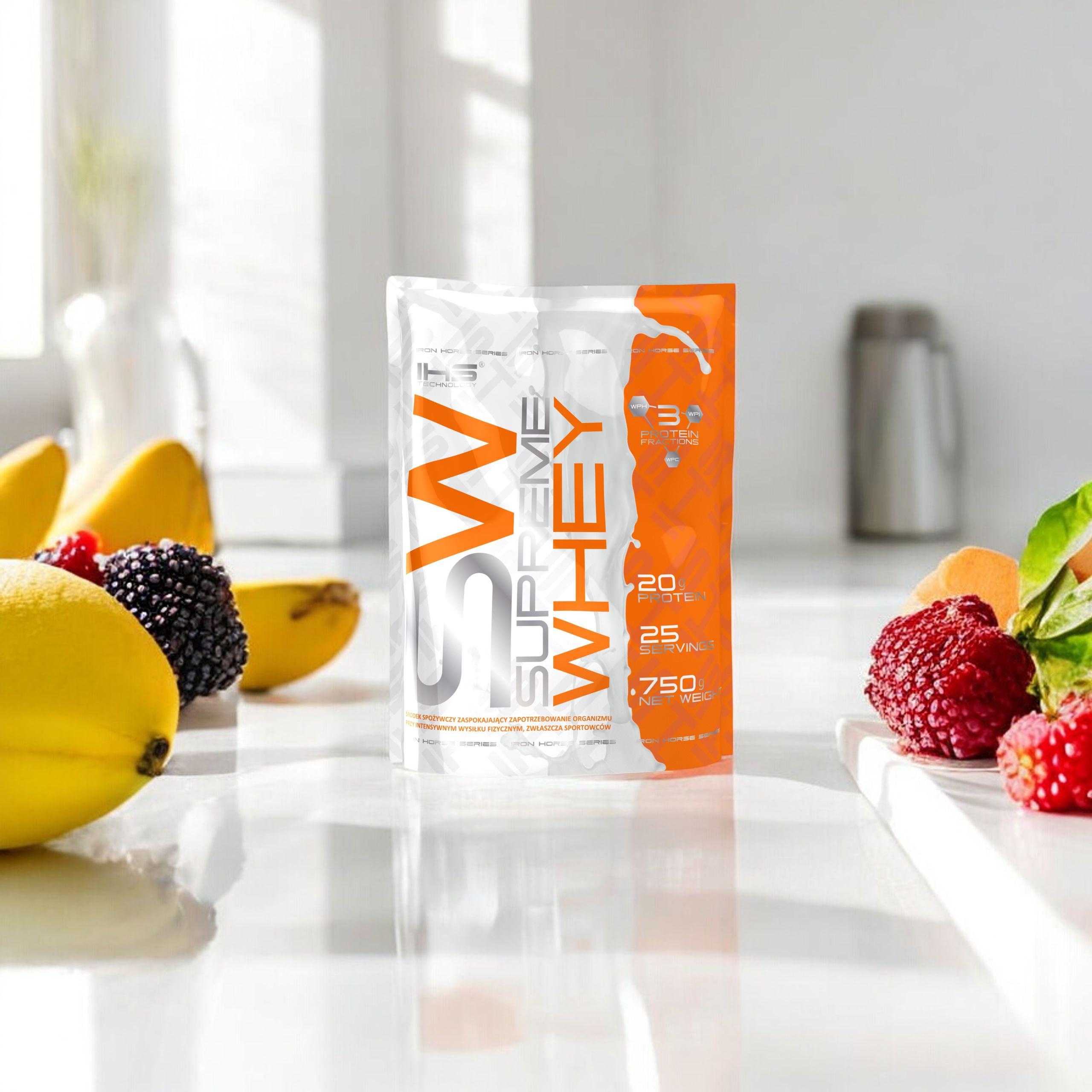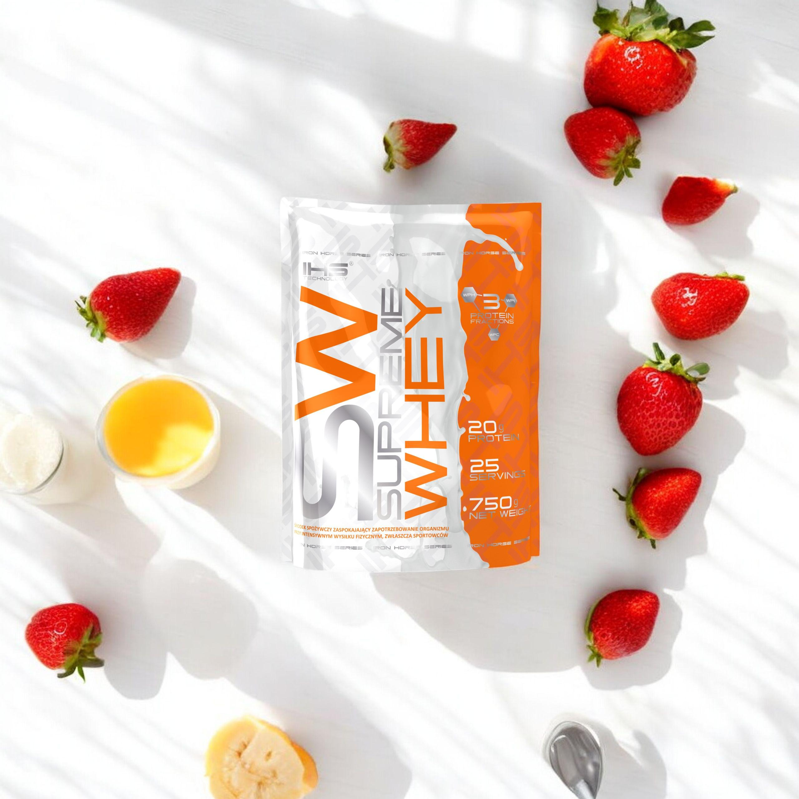 Supreme Whey obsahuje všechny frakce syrovátkových bílkovin, včetně: Beta-laktoglobulinu, Alfa-laktoalbuminu, Glykomakropeptidů a Imunoglobulinů. Jsou to látky nezbytné pro snadnější vstřebávání bílkovin a aminokyselin do krve, a tím i co nejrychlejší výživu těla v mikro- a makrosložkách. Stojí za zmínku, že produkt od firmy Iron Horse obsahuje jak koncentrát, izolát, tak hydrolizát syrovátkových bílkovin! Je to skvělý produkt, který byl zbaven zbytečných glutamínových peptidů. Díky němu rozvíjíte svou svalovou hmotu do maximálních možností a zároveň si zachováte správnou separaci a hustotu svalů. Tento produkt je určen jak pro fyzicky aktivní osoby, tak pro ty, u kterých se vyskytuje nedostatek bílkovin.