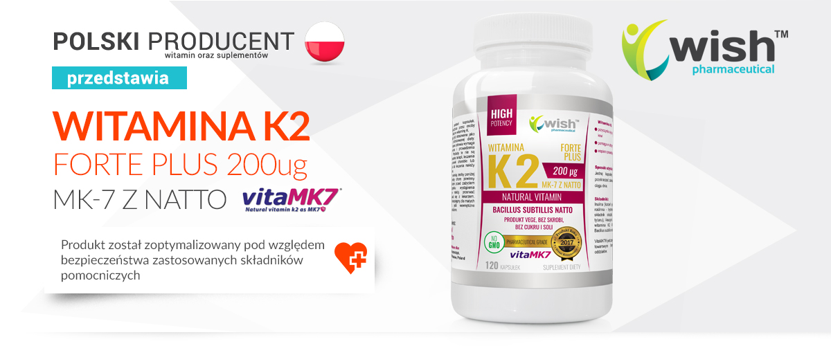 - Vitamin K2 Mk-7 Natto 200mcg je moderní doplněk společnosti WISH Phamraceutical. Obsahuje až 100 mcg vitamínu K2 vitaMK7 v jedné tabletce. Vitamin K pomáhá udržovat zdravé kosti a přispívá k správnému srážení krve.