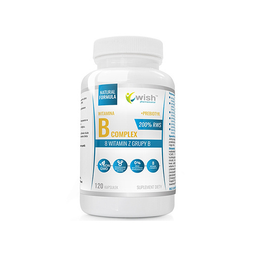 Produkt je bez genetických modifikací a s ohledem na složení obalu kapsle je vhodný také pro vegetariány a vegany. Pokud intenzivně trénujete nebo pracujete fyzicky, musíte pamatovat na správnou suplementaci svého organismu vitamíny skupiny B. Inulin obsažený v doplňku Wish Vitamin B Complex 200% je přírodním prebiotikem – nepodléhá trávení v lidském trávicím traktu, díky čemuž plní funkci vlákniny.