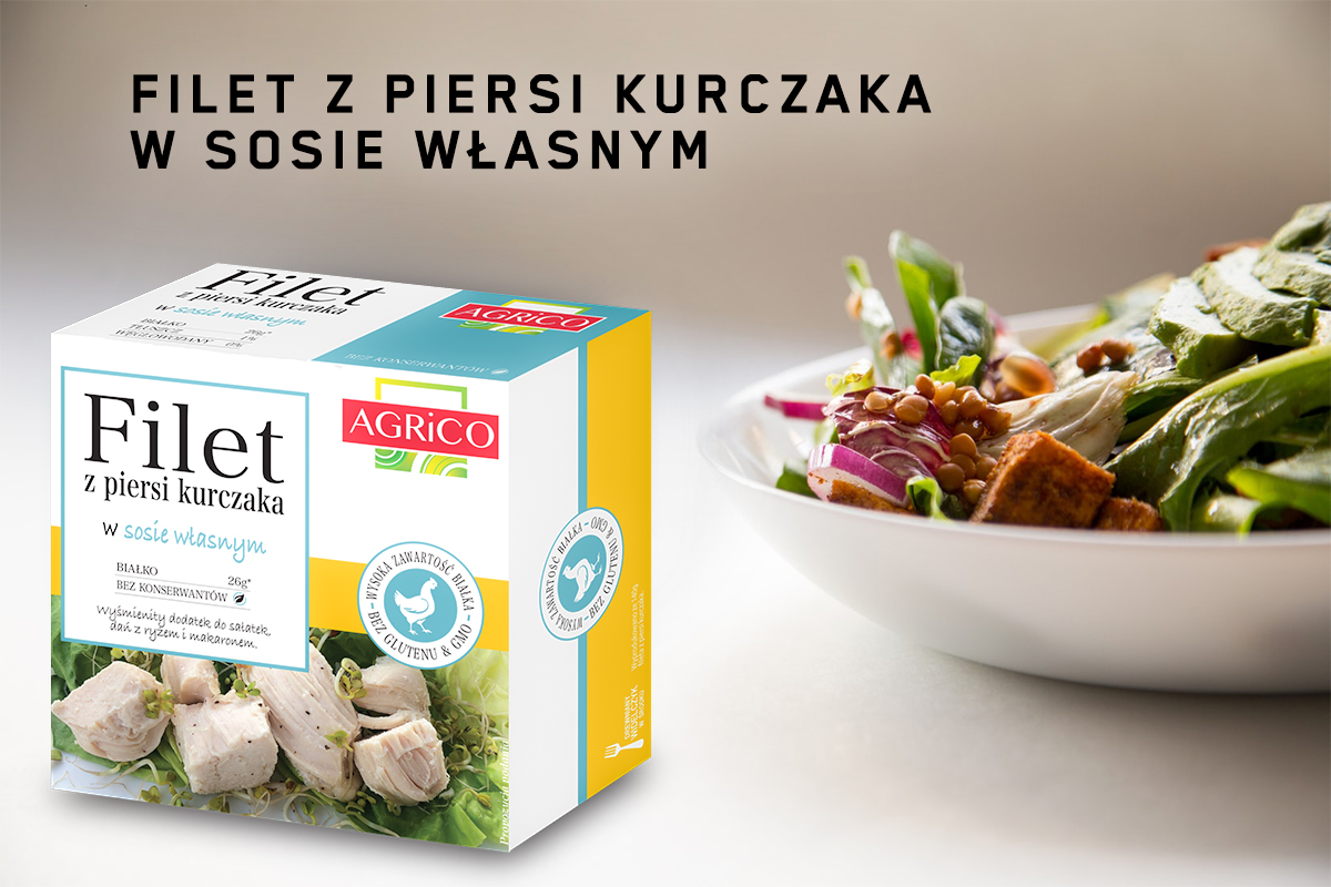 - Filet z prsou kuřete ve vlastní omáčce od Agrico je vynikající alternativou pro všechny, kteří chtějí mít sebou zdravé, rychlé jídlo, které nevyžaduje přípravu. Skvěle se hodí na cestování, neobsahuje konzervanty ani GMO.