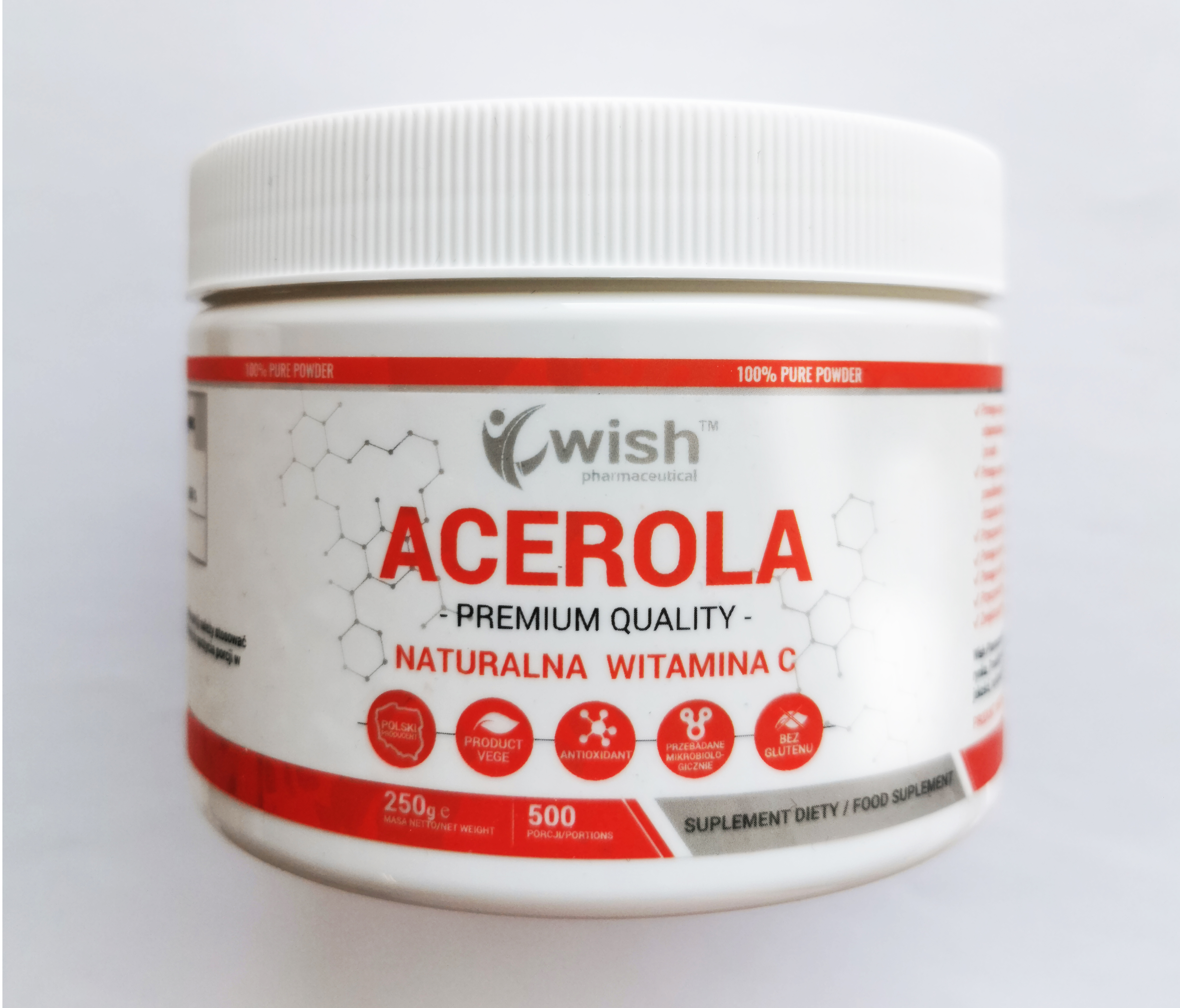 Způsob výroby vitaminu je mimořádně důležitý, protože má vliv na jeho vstřebávání. To, co odlišuje acerolou od běžných zdrojů, je její 30krát větší obsah vitaminu C než citron. Příjemná prášková forma je pohodlná pro všechny, kteří nemají rádi oblíbenou formu tablet. Kromě toho prášek může být přidán do koktejlů, džusů, jogurtů nebo jednoduše rozpuštěn vodou. Spoj příjemné s užitečným a vyzkoušej Acerolu od firmy Wish!