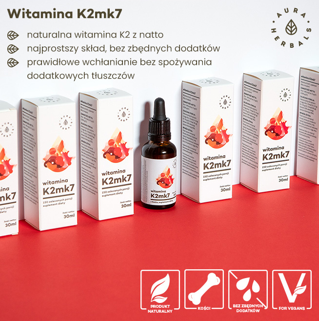 - Doplněk stravy Vitamin K2 Mk-7 od Aura Herbals je doporučen lidem, kteří chtějí pečovat o zdraví svých kostí. Forma tekutiny činí vitamin K2 Mk-7 mnohem lépe rozpustitelným a vstřebatelným. Praktická pipeta usnadní dávkování.