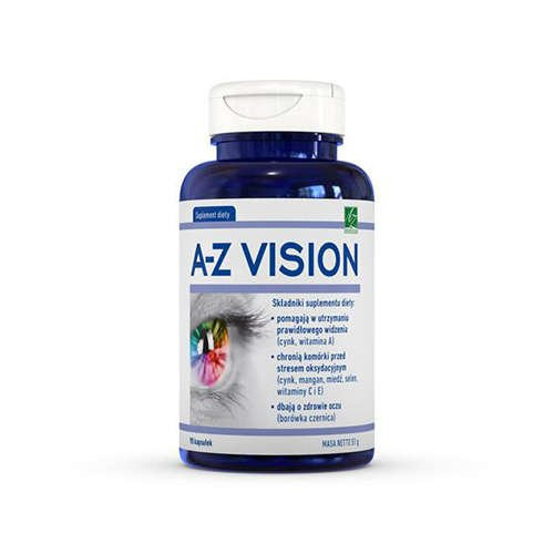 • A-Z Vision je přípravek, jehož složky jsou sestaveny tak, aby poskytly komplexní podporu zrakovému orgánu. V doplňku lze nalézt vitaminy A, C a E, stejně jako selen, jód, měď, zinek, železo a přídavek extraktu z černých borůvek a aksamitky.