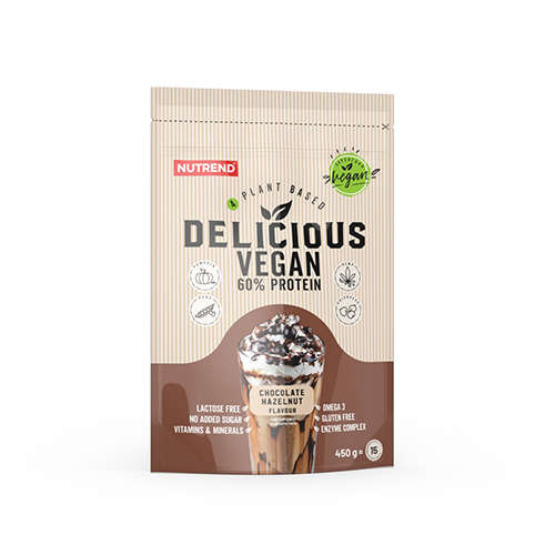 - Delicious Vegan Protein od Nutrend je chutný, bílkovinný doplněk, který obsahuje proteiny ze 4 zdrojů. V jeho složení se nachází komplex enzymů, které usnadňují trávení. Obsahuje vitamíny a minerály, avšak neobsahuje lepek a laktózu