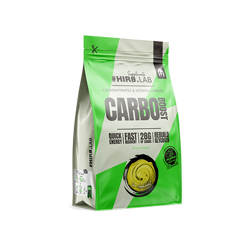• Hiro.Lab Carbo Boost je doplněk, který je vynikajícím zdrojem energie. Díky kombinaci dextrózy s hydrolyzovaným škrobem se získal produkt, který dodává sacharidy od 10 do 70 minut po jeho užití. Podpoří tvou regeneraci.