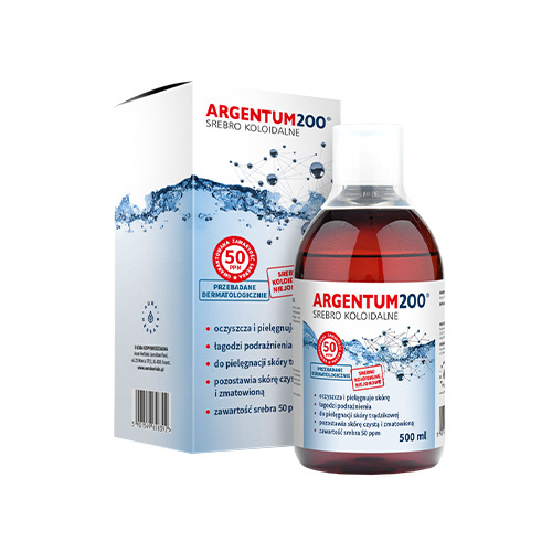 • Argentum200 to tonikum s koloidním stříbrem o koncentraci 50 ppm ve spreji. Čistí a pečuje o pokožku, inhibuje vylučování mazu (matní), zmírňuje podráždění, pro péči o aknózní pleť. Produkt dermatologicky testován.