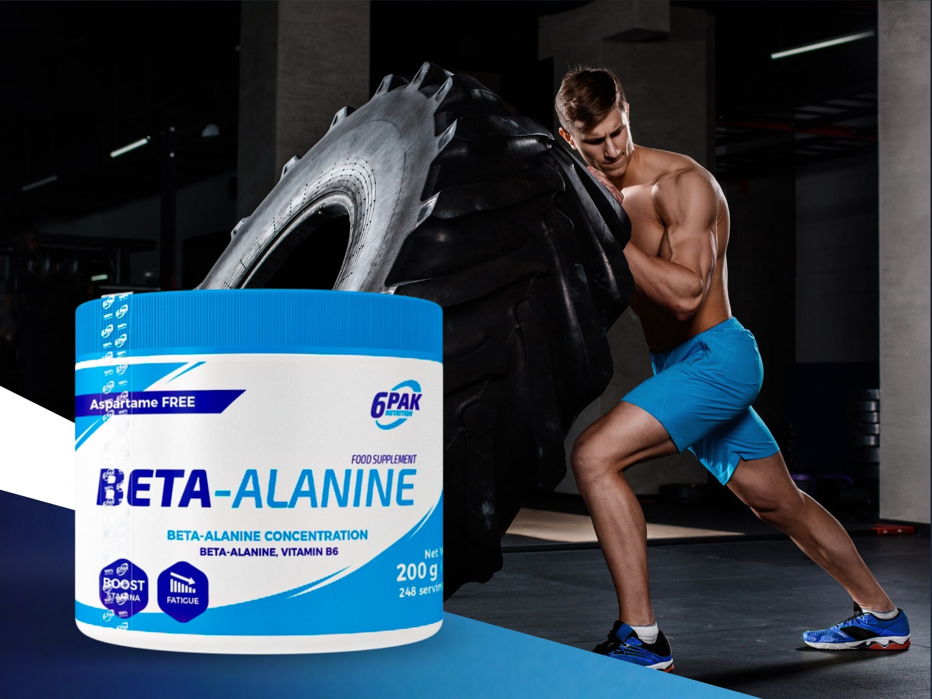 - Beta-alanin je aminokyselina, která se podílí na tvorbě bílkovin. Ovlivňuje příznivě rozvoj síly a vytrvalosti svalů a růst svalové hmoty bez tuku.