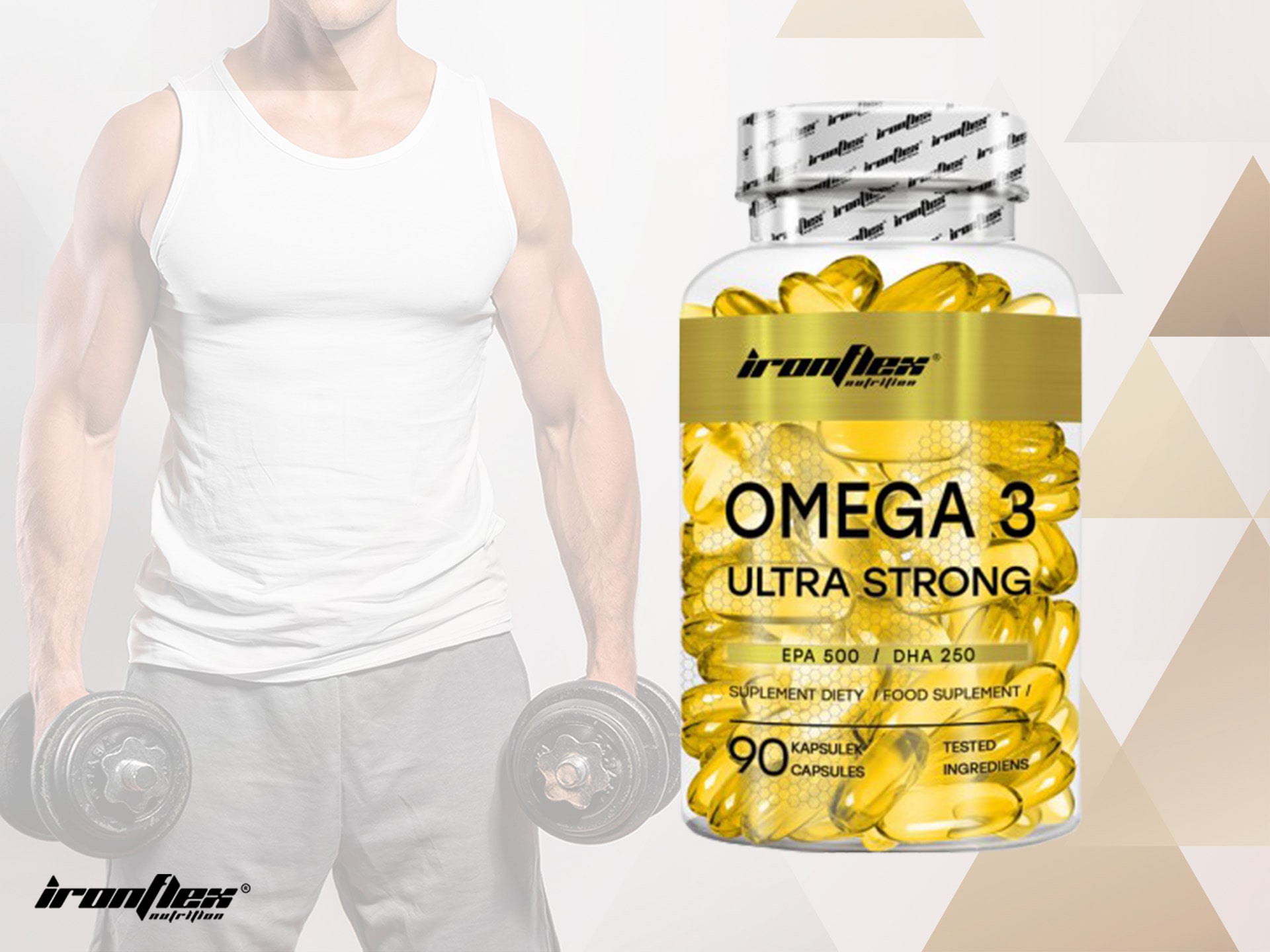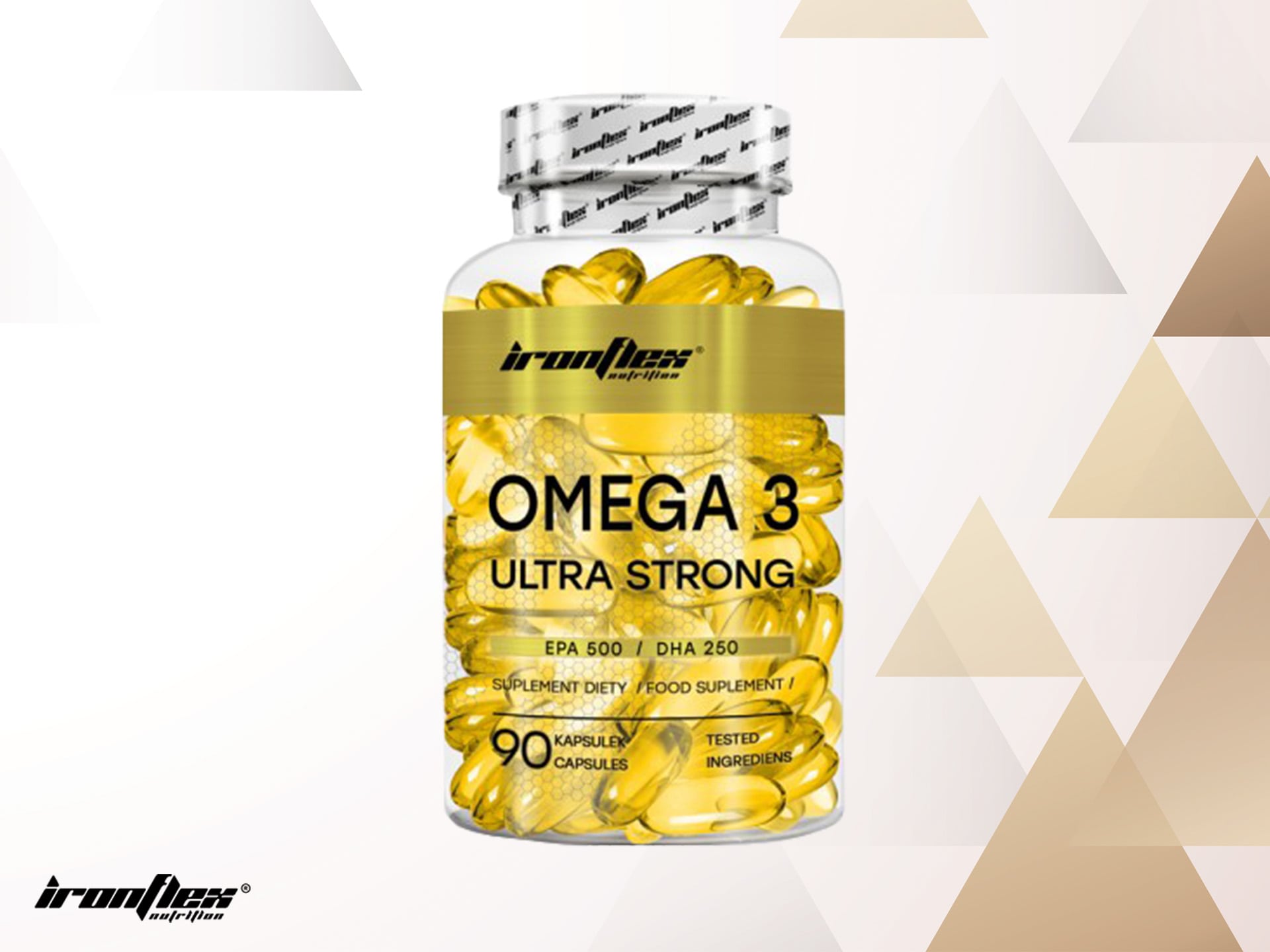 Ironflex Omega 3 Ultra je doplněk obsahující ultra-koncentrovanou dávku mastných kyselin omega-3: DHA (dokozahexaenová kyselina) a EPA (eikosapentaenová kyselina). Je to produkt, který pomáhá udržovat zdraví nejen sportovců a fyzicky aktivních osob, ale každého z nás. V naší stravě často chybí produkty bohaté na nenasycené mastné kyseliny, proto stojí za to je doplnit zvenku, protože jsou nezbytné pro udržení plného zdraví a dobré nálady. Přesvědč se!