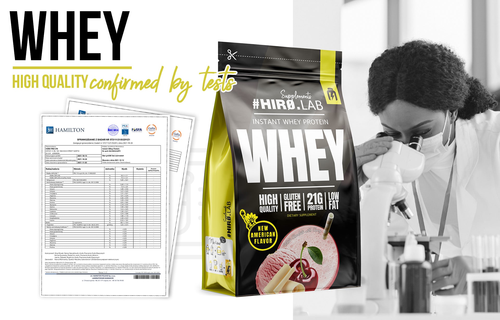 Hiro.Lab je uznávaný výrobce z Velké Británie. Proč jsou jejich produkty výjimečné? Příznivci značky sáhnou po doplňcích a výživě Hiro.Lab díky vynikající kvalitě suroviny, dobré vstřebatelnosti a mnoha chuťovým variantám. Přesvědči se, která z nich si získá tvé srdce. Hiro LAB jako jeden z mála výrobců v odvětví publikuje kompletní testy svého proteinového doplňku. Test zahrnuje nejen informace o suché hmotnosti bílkovin, ale také úplný aminokyselinový profil potvrzující vysokou kvalitu proteinového doplňku. Kompletní testy můžeš vidět zde.