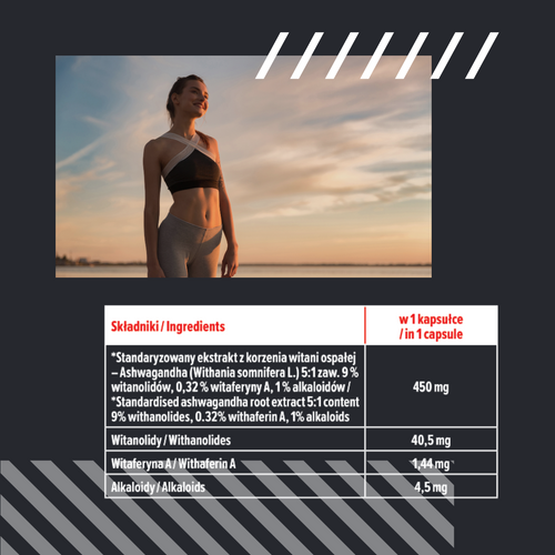 Díky pečlivému výběru a standardizaci extraktu, každá kapsle Ti poskytne 450 mg ashwagandhy, včetně až 9% witanolidů – klíčových aktivních složek této rostliny. Přípravek se vyznačuje přítomností witaferinu A, který zesiluje působení ashwagandhy, a 1% alkaloidů, což potvrzuje bohatství bioaktivních složek, které společně tvoří unikátní formuli tohoto doplňku. Představ si těžký den v práci, tlak blížících se termínů a narůstající pocit přetížení. V takových chvílích, díky pravidelnému užívání ashwagandhy, se můžeš cítit více uvolněně a vyváženě, zvládaje napětí a stres. A to vše v jedné kapsli, díky které můžeš čerpat plné výhody této magické rostliny.