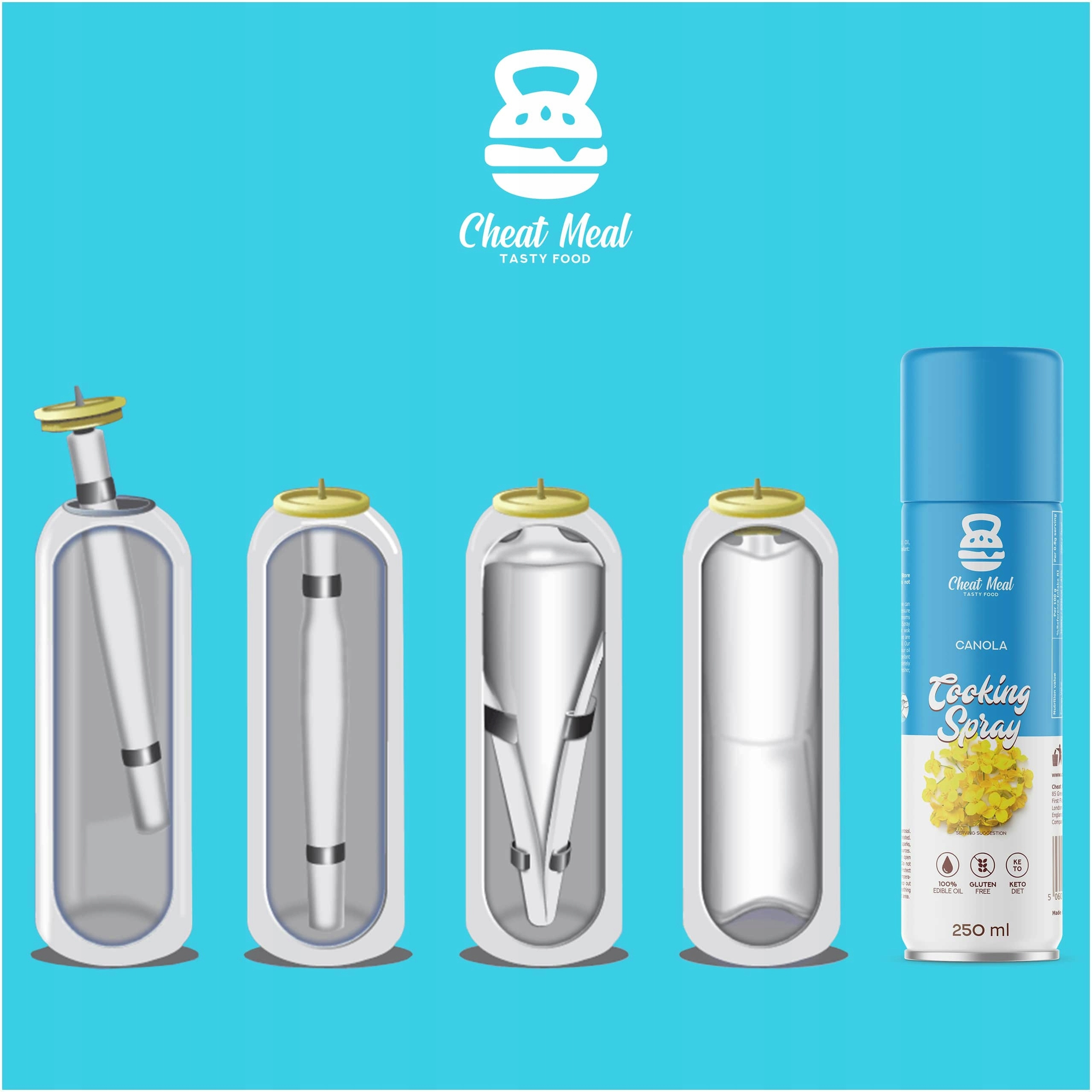 Naše technologie Bag-On-Valve udržuje váš olej v odděleném sáčku uvnitř plechovky. Díky tomuto dodatečnému zabezpečení je váš olej čistý, zcela bez hnacího plynu a zůstává déle čerstvý! Také zajistí, že bude olej využit do poslední kapky! Pohodlí a úspora zároveň? Je to možné — důvěřujte značce Cheat Meal na cestě k vysněné postavě.