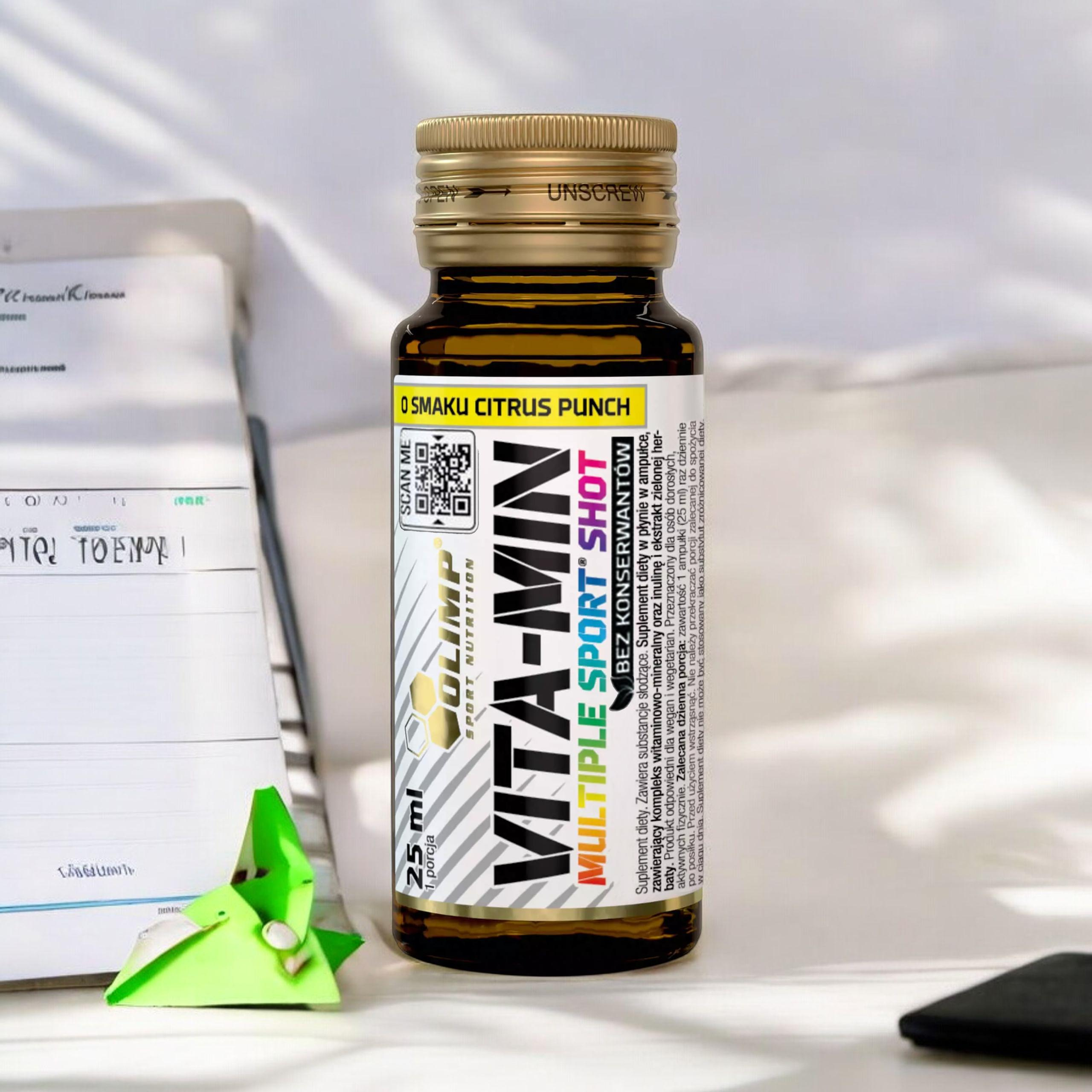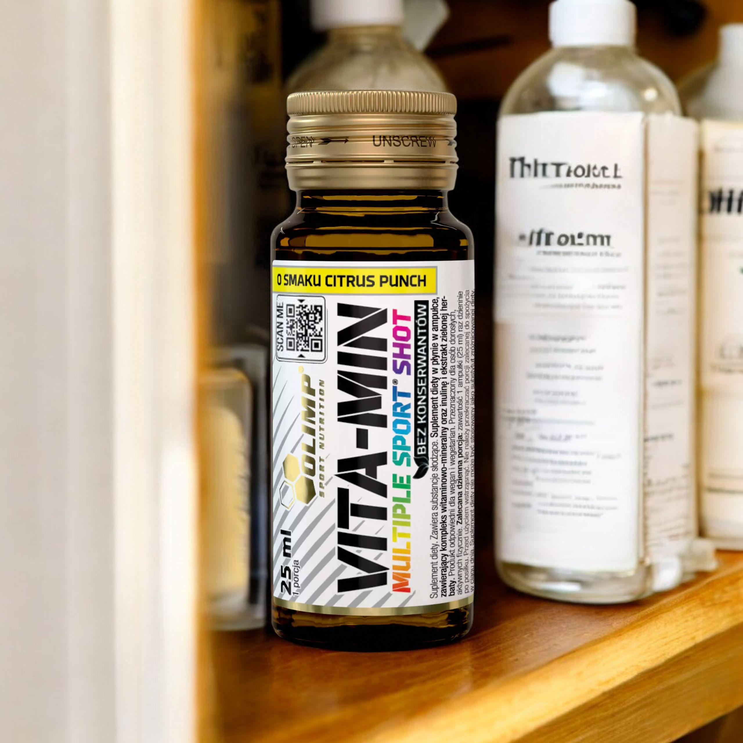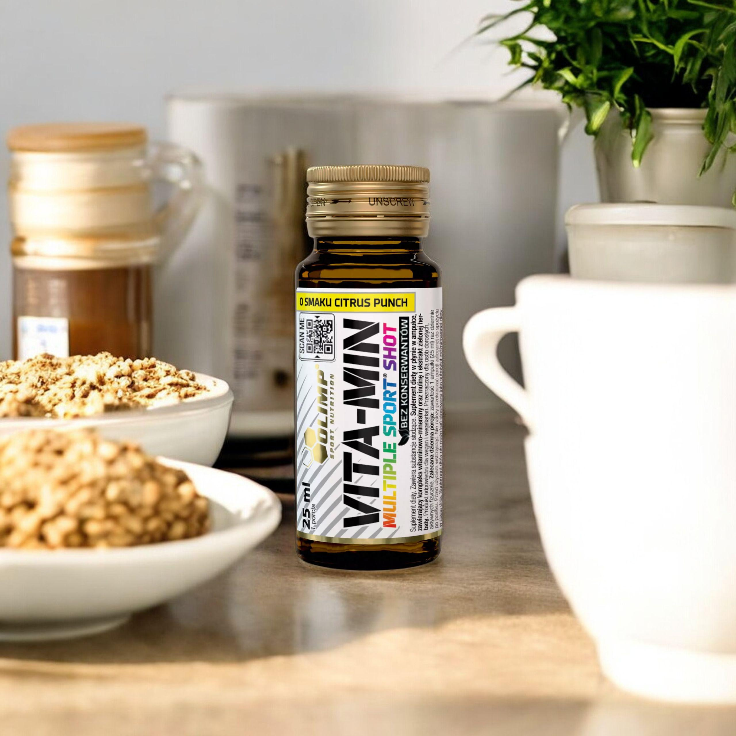 - Vita-Min Multiple Sport Shot je všechny vitamíny a minerály, které potřebuje aktivní organismus. Užívejte si své oblíbené tréninky a zůstaňte plní energie s vitamínově-minerálním komplexem v pohodlné formě shotu značky Olimp.