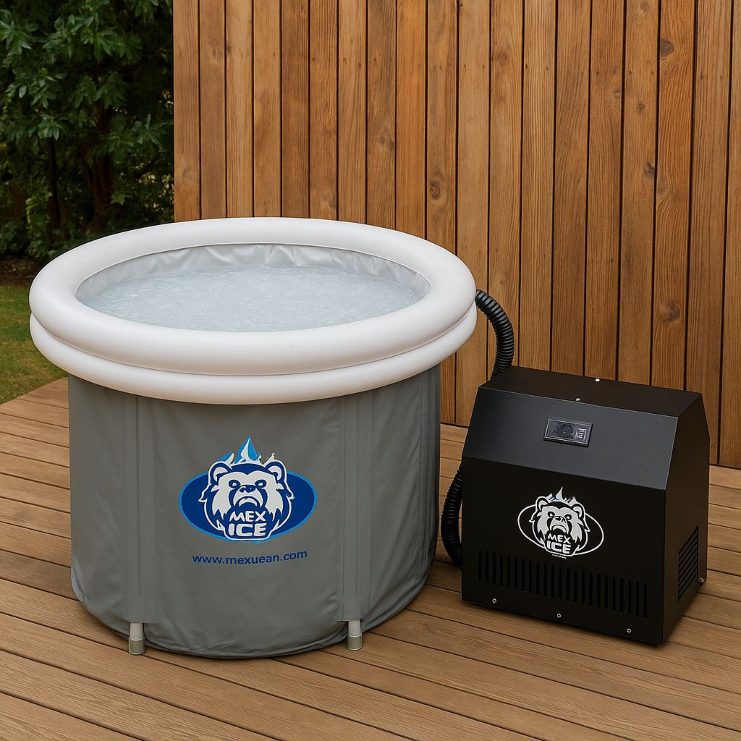 Skládací vana MEX ICE je nejlepší volba, která vám umožní začít s otužováním a čerpat zdravotní přínosy po celý rok. Má dva boční otvory a jeden spodní otvor sloužící k vypouštění vody a také nafukovací obruč, která udržuje tuhost konstrukce (dbali jsme na to, aby ventil bránil úniku vzduchu ven). Je to ideální řešení pro ty, kteří hledají ekonomii. Cena vany zahrnuje 2 kryty (vnitřní a vnější), zatímco většina výrobců je nabízí za příplatek, a 8 vyztužujících vzpěr, o dvě více než podobné vany jiných značek. Vana byla navržena s ohledem na maximální volnost používání a stabilitu konstrukce. Její obvod je o 20 cm větší než u konkurenčních produktů, což umožňuje plné ponoření těla bez ohledu na výšku a hmotnost osoby, která koupel užívá (testováno s basketbalisty vyššími než 2 m a strongmany s hmotností výrazně přesahující 100 kg). Jde o jedinou skládací vanu na trhu, která má možnost připojení k chladicí jednotce, kterou lze dokoupit samostatně.