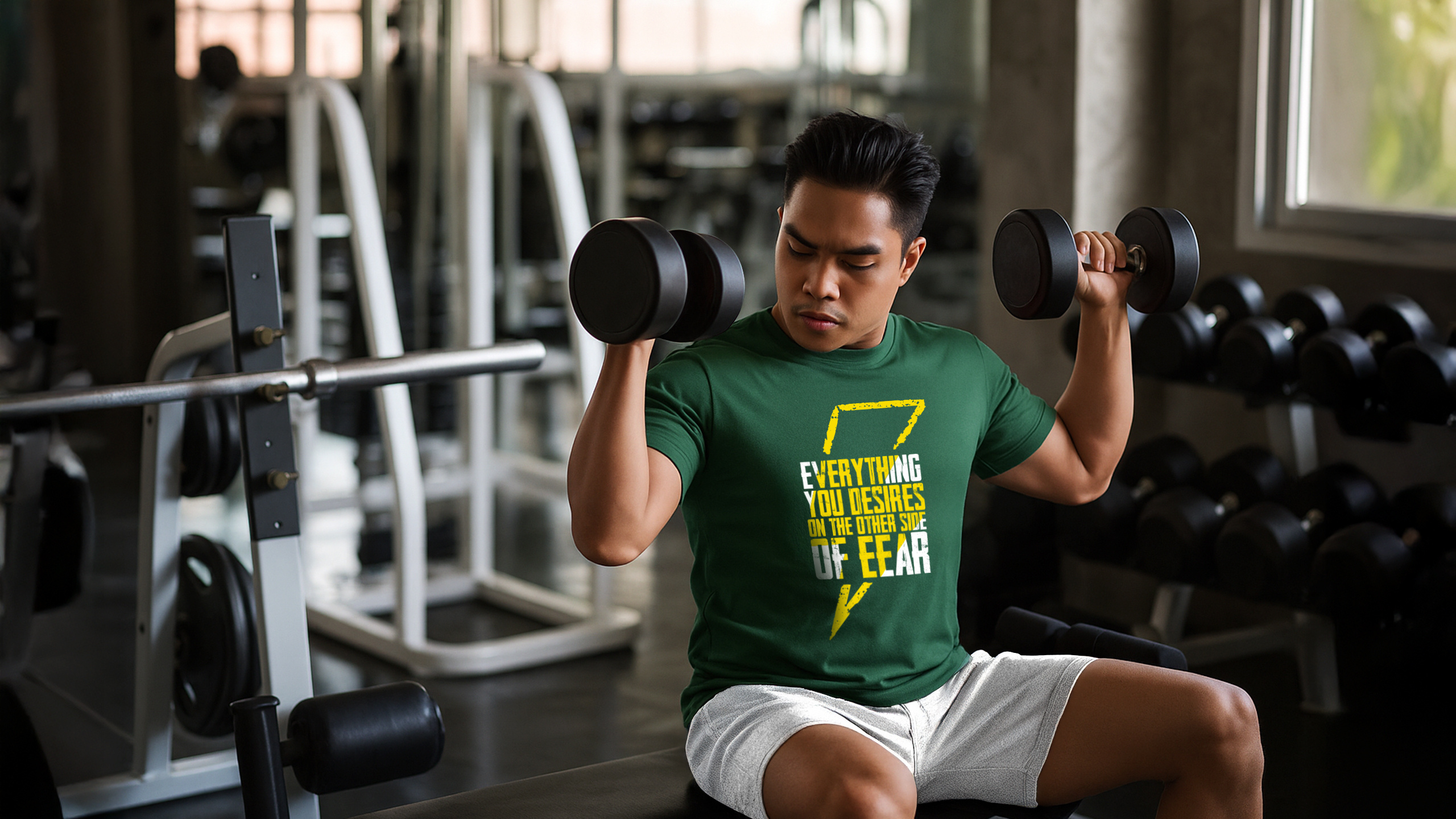 T-shirt “Everything You Desire Is On The Other Side Of Fear” byl vytvořen pro ty, kteří se nezastaví v polovině cesty. Pro lidi, kteří dokážou riskovat, přijmout výzvu a překročit své hranice — jak v posilovně, tak v každodenním životě. Je to symbol autenticity, odvahy a vnitřní síly, která tě pohání vpřed, i když ostatní pochybují.
