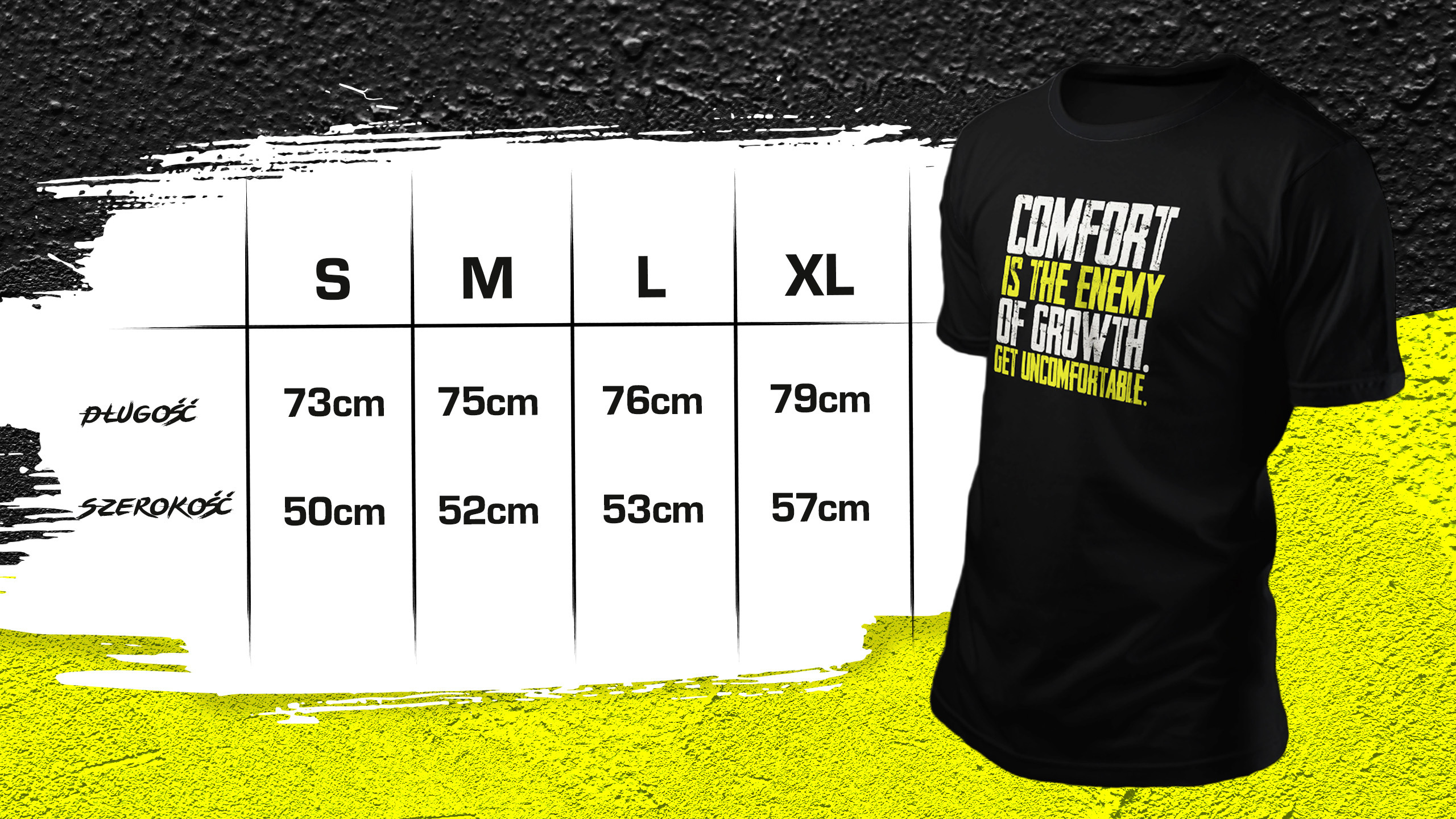 🔥Motivační poselství – heslo „Comfort is the Enemy of Growth. Get Uncomfortable.” inspiruje k akci a připomíná, že skutečný růst začíná mimo zónu pohodlí.